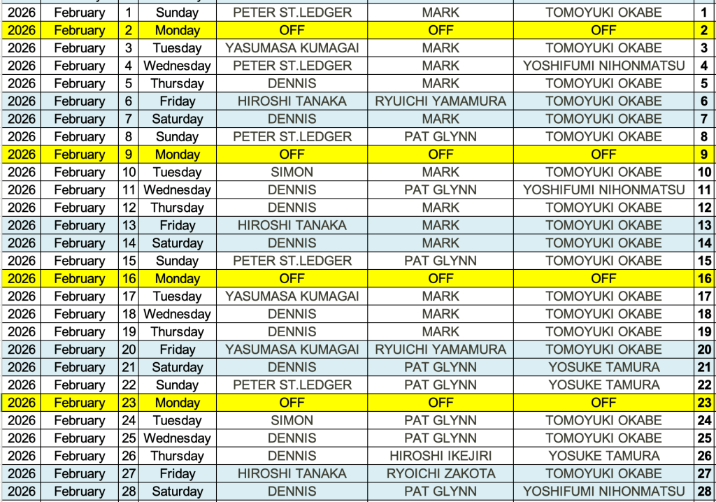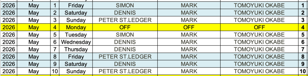 TUESDAY-WEDNESDAY-THURSDAY AND SUNDAYS
